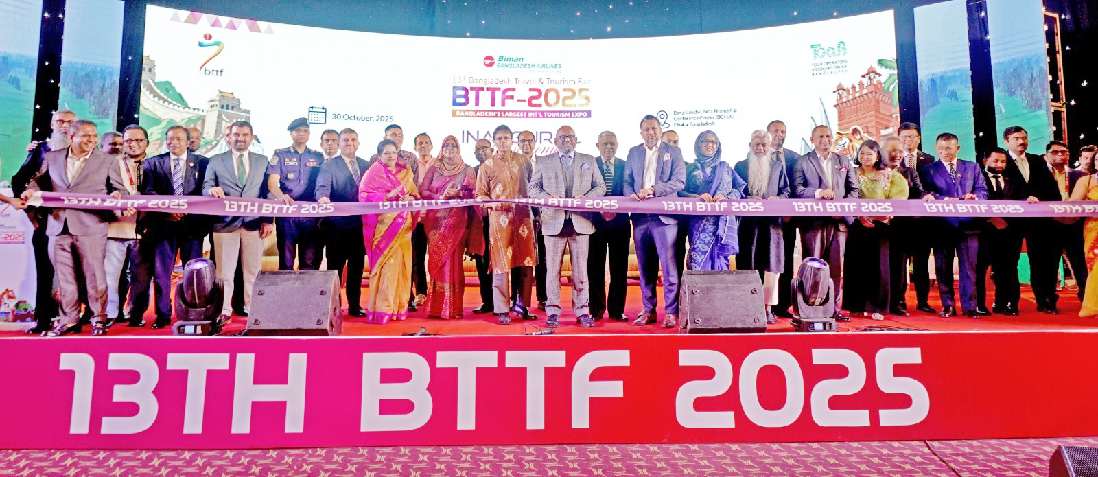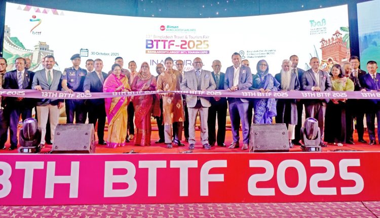 বাংলাদেশের বৃহত্তম পর্যটন মেলা ১৩ তম বিমান বাংলাদেশ ট্রাভেল এন্ড ট্যুরিজম ফেয়ার (বিটিটিএফ) ২০২৫ শুরু হয়েছে। আজ বৃহস্পতিবার (৩০ অক্টোবর) রাজধানী ঢাকার বাংলাদেশ-চায়না ফ্রেন্ডশিপ কনফারেন্স সেন্টারে (বিসিএফসিসি) জমকালো আয়োজনরে মধ্য দিয়ে এই মেলার উদ্বোধন করা হয়। তিনদিনব্যাপী এই মেলার প্রধান অতিথি হিসেবে উপস্থিত থেকে আনুষ্ঠানিকভাবে এ মেলার উদ্বোধন করেন প্রধান উপদেষ্টার আন্তর্জাতিক বিষয়ক বিশেষ দূত লুৎফে সিদ্দিকী।