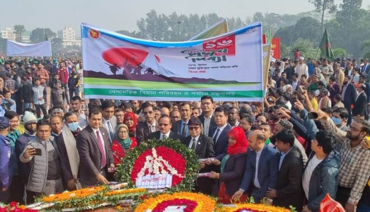 অদ্য ১৬ ডিসেম্বর, ২০২৩ খ্রি. তারিখ মহান বিজয় দিবস উপলক্ষ্যে সাভারের জাতীয় স্মৃতিসৌধে পুষ্পস্তবক অর্পণ করে মুক্তিযুদ্ধে সকল শহিদের প্রতি গভীর শ্রদ্ধা নিবেদন করেন বেসামরিক বিমান পরিবহন ও পর্যটন মন্ত্রণালয়ের সম্মানিত সচিব জনাব মোঃ মোকাম্মেল হোসেন।